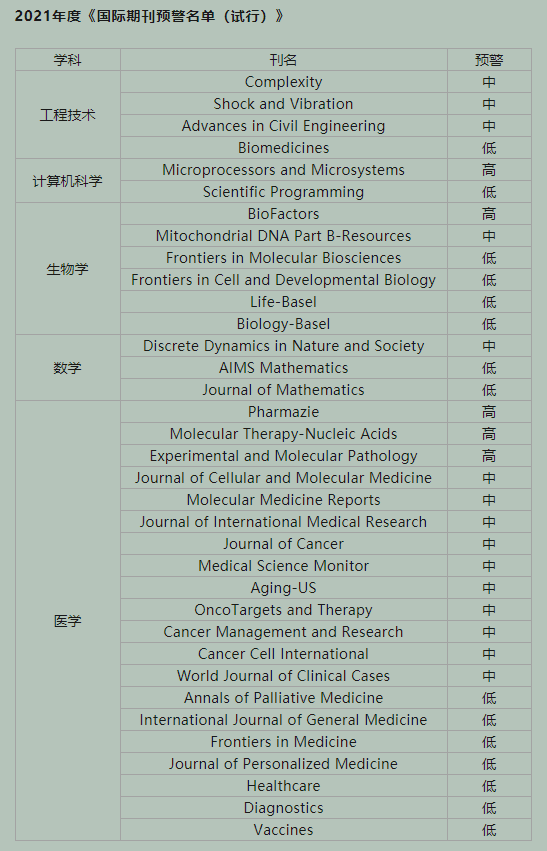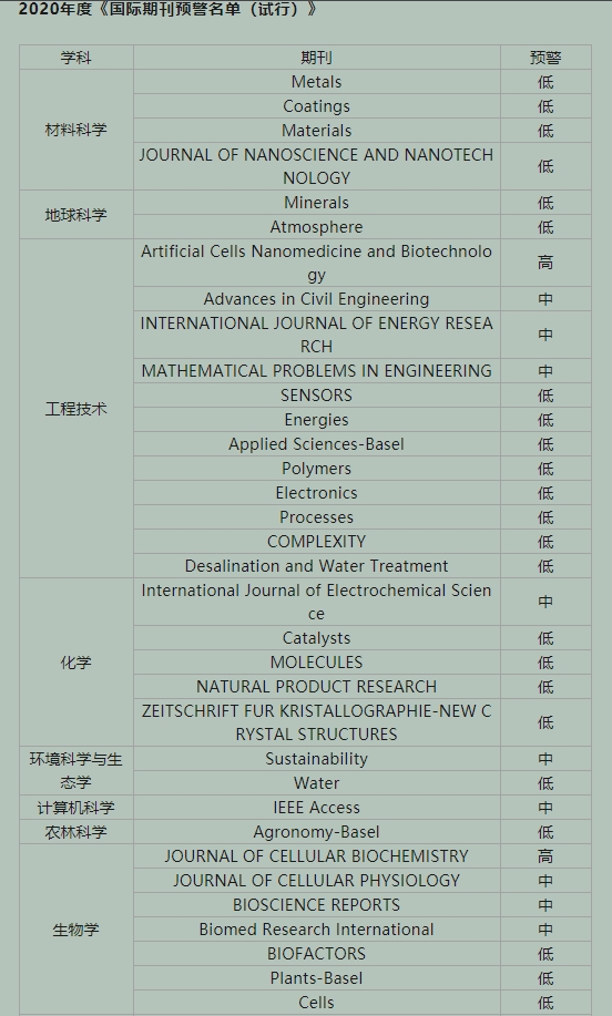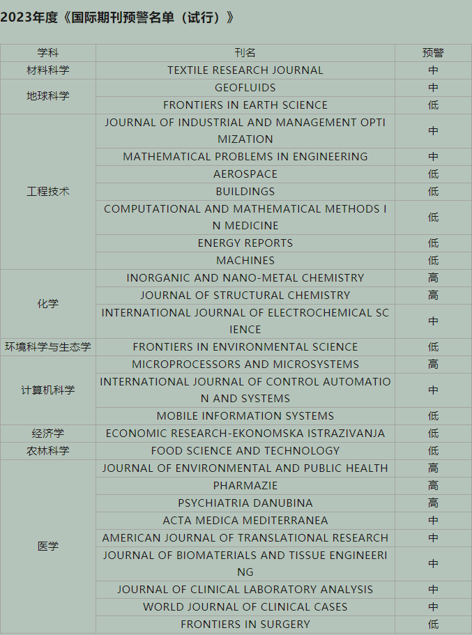敬请我校各位科研工作人员高度关注,相关成果审慎发表在预警期刊中。