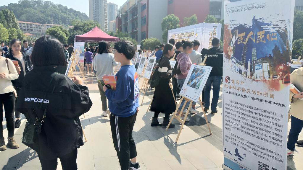 十九大报告中提出,“建设知识型、技能型、创新型劳动者大军,弘扬劳模精神和工匠精神,营造劳动光荣的社会风尚和精益求精的敬业风气”。工匠精神是职业道德、职业能力、职业品质的体现,为充分发挥高校在弘扬劳模精神和工匠精神中的作用,鼓励高职院校师生传承、践行工匠精神品质,由我校申报的2018年度重庆市社会科学普及活动项目“工匠精神进校园”实践宣传系列活动(项目编号:2018KH18)在合川三所高校顺利开展,线上线下约10万人次关注本次活动,在合川高校营造了践行工匠精神的良好风气。