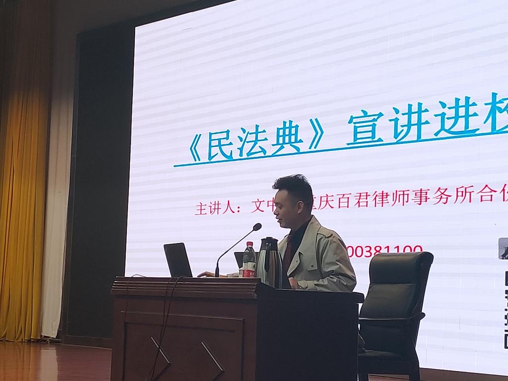 10月28日至11月2日,合川区首届人文社科普及宣传周活动在我校开展。10月28日下午,系列人文社科宣传活动之《民法典》宣讲走进我校,重庆百君律师事务所合伙人文中武律师带来了一场生动的《民法典》宣讲讲座,两校区共计700余名学生参与聆听。