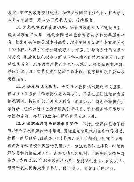 职业教育与继续教育2022年工作要点