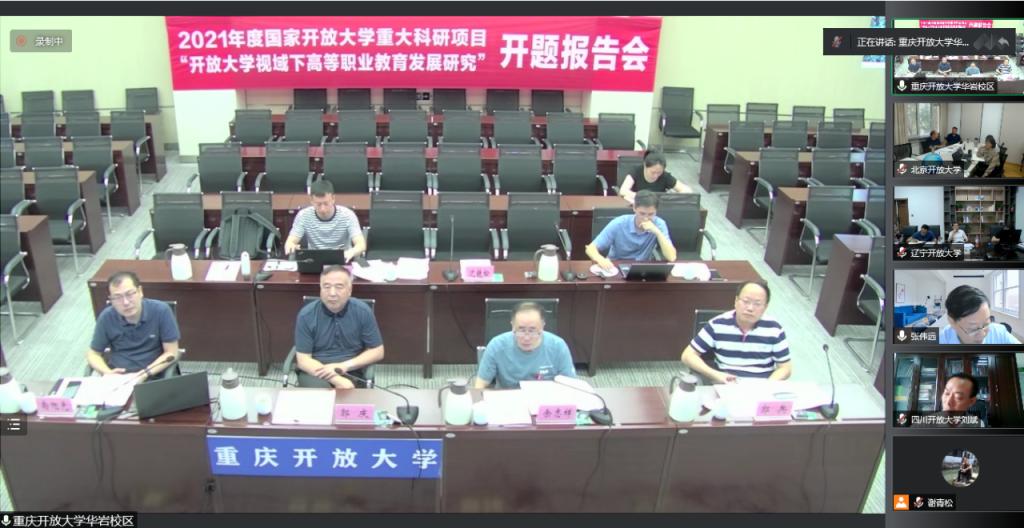 2022年6月30日,学校党委书记郭庆教授牵头承担的2021年度国家开放大学重大科研项目“开放大学视域下高等职业教育发展研究”项目开题报告会通过线上线下相结合的方式成功举行。北京师范大学首都学习型社会研究院院长张伟远教授、重庆市高教学会秘书长余志祥教授、江苏开放大学教育科学研究院院长纪河教授、重庆开放大学科研处处长郭兵教授及质量办副主任沈铁松教授担任开题评议专家。总项目和五个子项目负责人及成员,以及科研处相关人员出席报告会,国家开放大学科研处处长陈守刚在线参会指导。