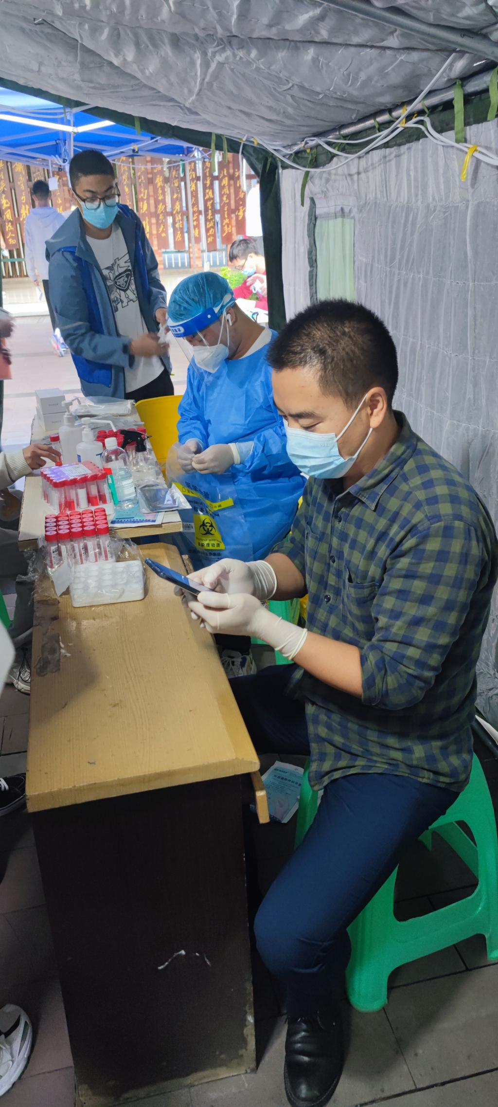 为认真落学校党委关于近期疫情防控工作的安排部署,确保全体师生的生命健康安全。10月11日,机关二党总支8名志愿者坚持亮身份、当先锋、走在前、做表率,充分发挥基层党组织战斗堡垒作用和党员先锋模范作用,迅速组建一支疫情防控志愿服务队伍,积极参与核酸检测登记、秩序维护、物资协调等工作,累计检测一万余人次,工作高标准、零失误,以实际行动展现新时代教育工作者的责任与担当。