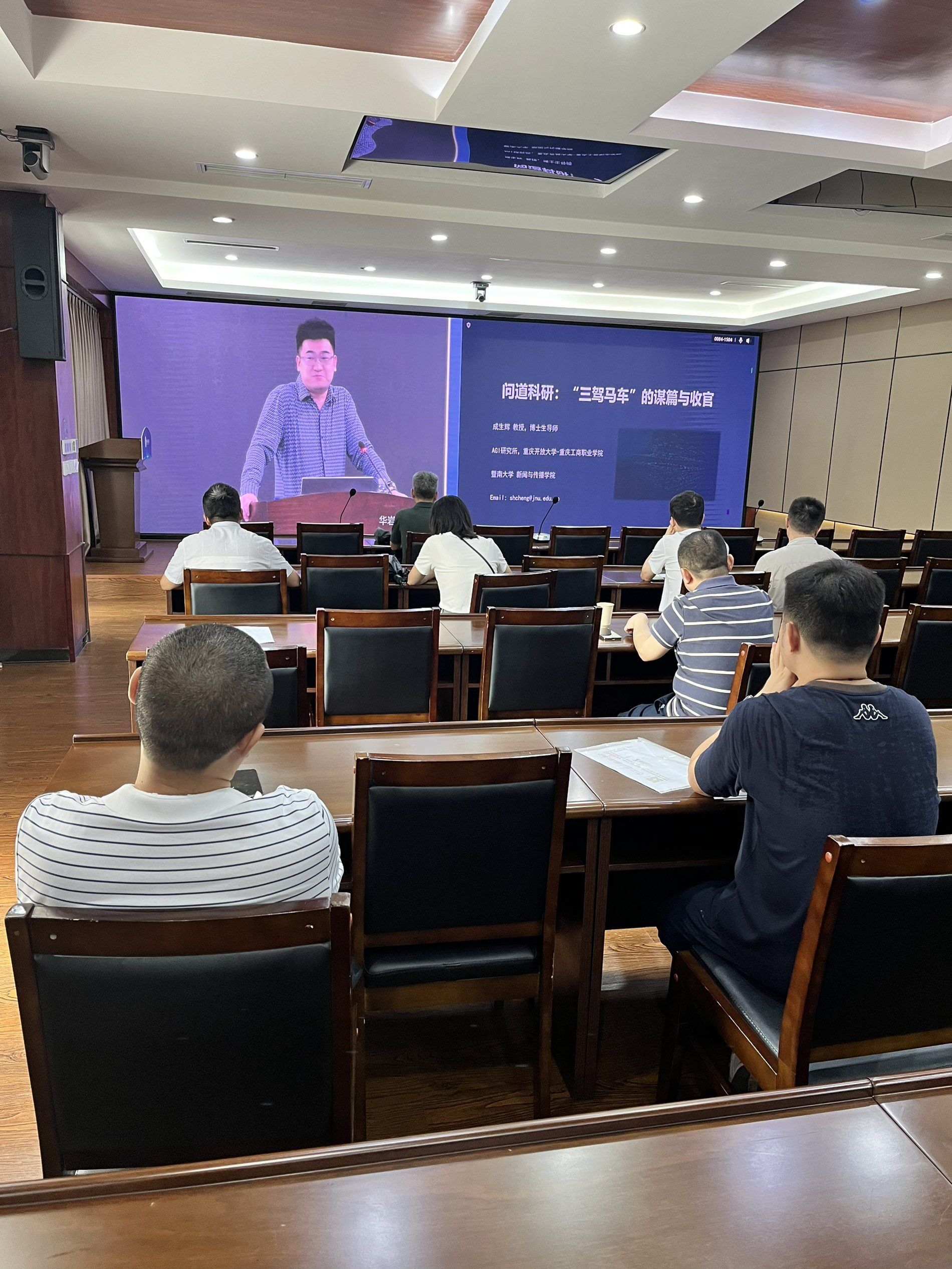 本次研讨会特邀暨南大学博士生导师、重庆工商职业学院AGI智媒体技术创新研究所负责人成生辉教授进行专题讲座。成教授深耕生成式人工智能、大数据、数字传播、网络治理等领域,获国际青年科学家奖章,入选浙江省高校领军人才培养计划、深圳市海外高层次人才(孔雀计划)等多项省市级高层次人才计划,具有丰富的学术成果。成教授主要围绕高水平论文发表、项目申报、专著撰写三个核心板块进行分享,为我校博士、青年科研工作者提供了从微观到宏观、从理论到实践的完整科研能力提升路径。
