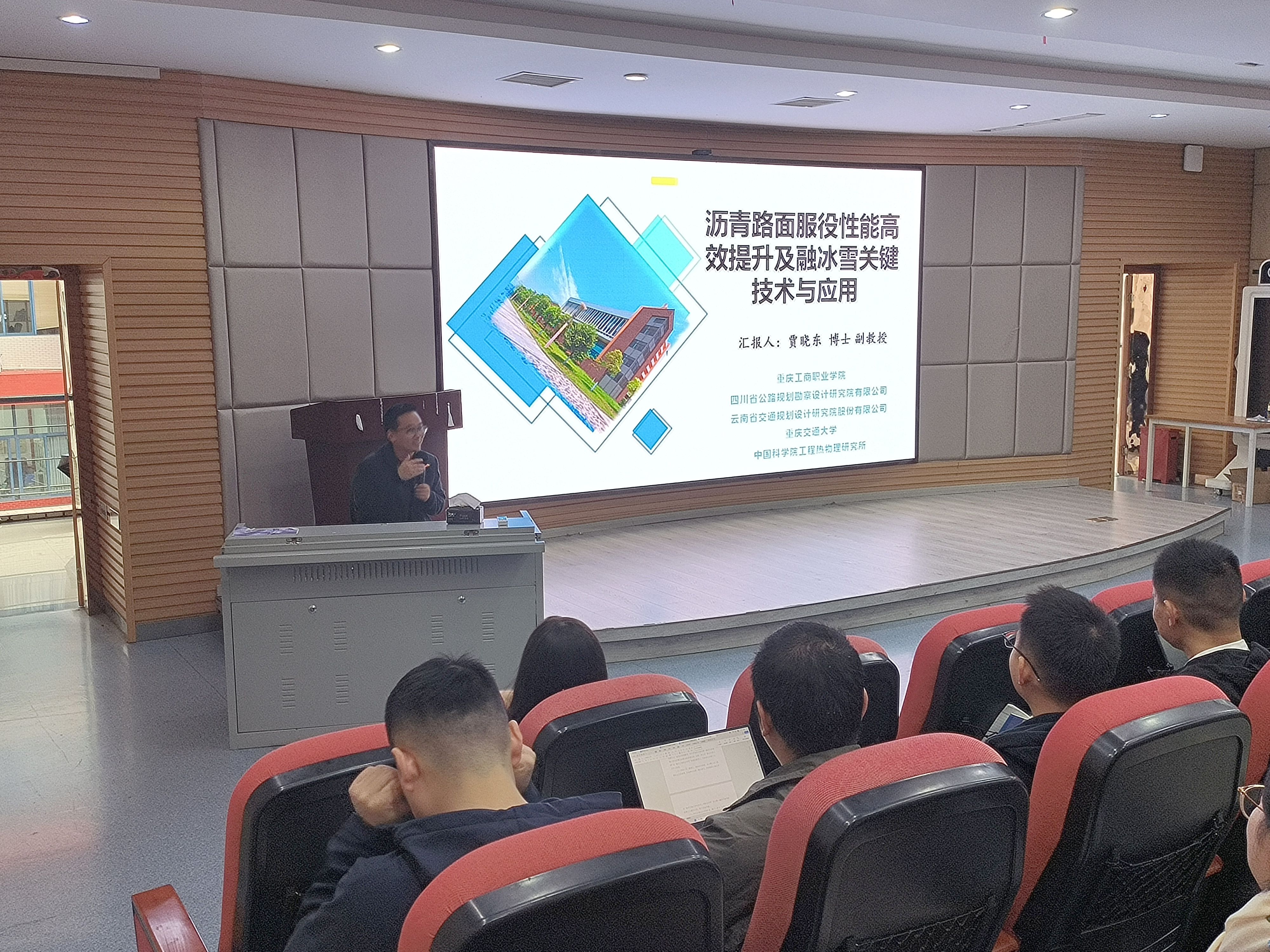 本次论坛特邀全国技术能手、巴渝青年学者、学校科技处副处长贾晓东副教授主讲。贾晓东副教授围绕“科技奖项培育与申报指导”这个主题,以自己成功申报的“沥青路面服役性能高效提升及融冰雪关键技术与应用”项目为例,讲解了省部级科学技术奖的申报流程以及成果的转化、应用、持续开发潜力、技术保护等方法,以期培育出更多的重庆市科学技术奖。贾晓东还结合自己的成功经验,给现场教师提出了在申报奖项过程中应注重相关专利申请、重视与企业的合作等建议。